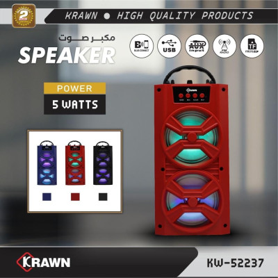 مكبر صوت محمول من ماركة "KRAWN" يتميز بتصميم عصري باللون الأحمر.